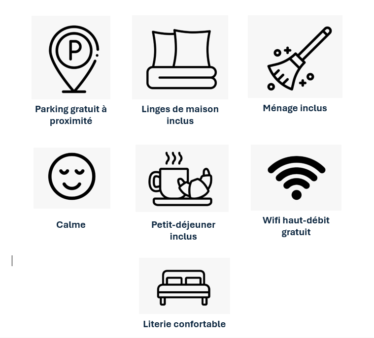 Nos chambres, décorées avec soin, vous garantissent repos et sérénité 🛏️. Chaque matin, profitez d’un petit-déjeuner généreux composé de produits frais et locaux 🍯🥐. Grâce à cette attention, votre journée commence dans la convivialité et la douceur.